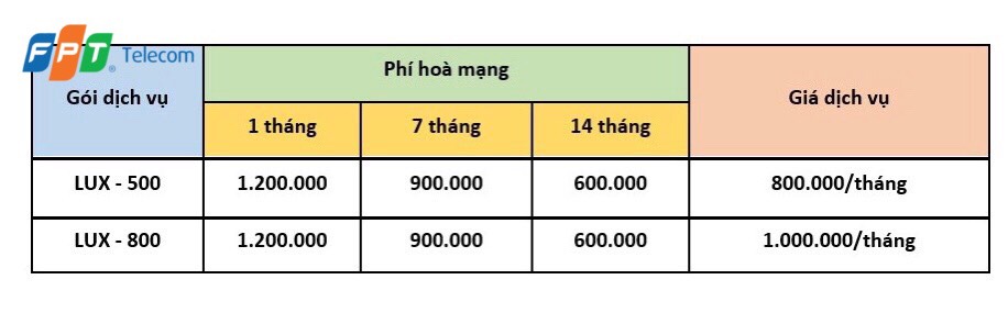 3. Bảng giá gói internet LUX FPT và thiết bị triển khai